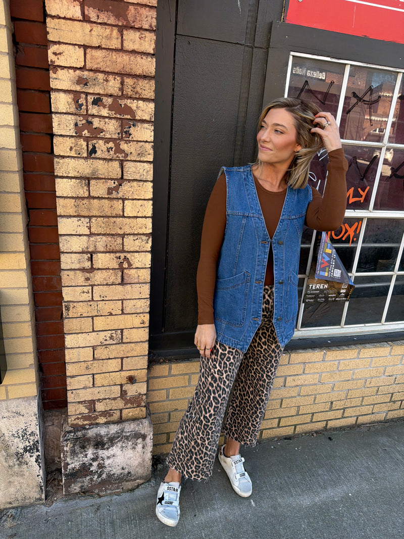 leopard barrel jeans