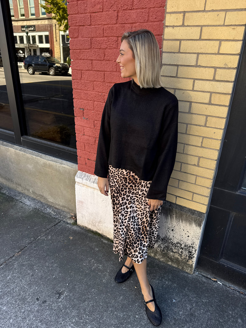 leopard print satin skirt