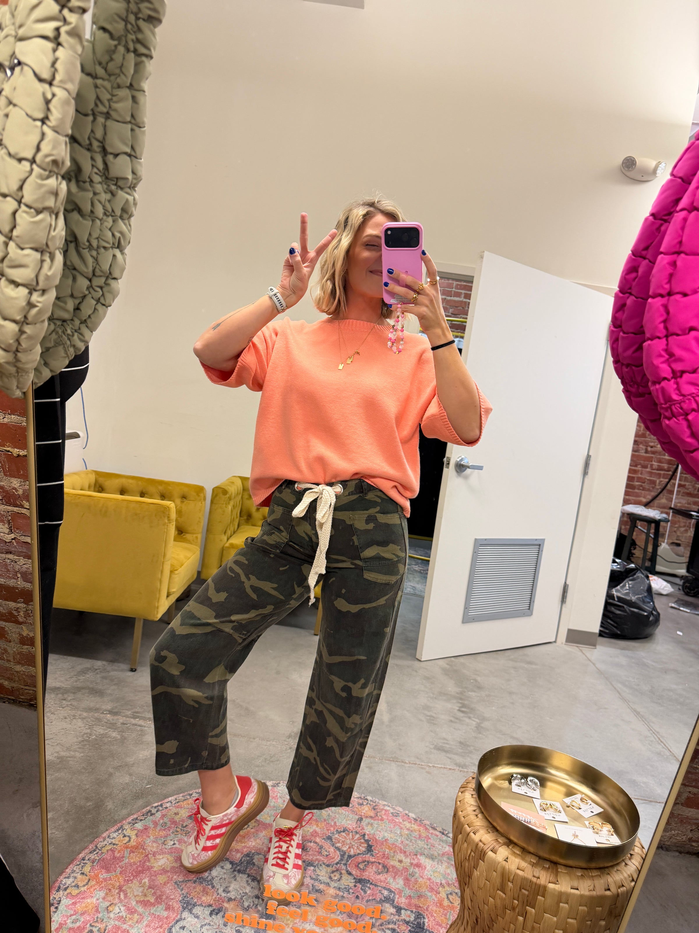 These camo roped pants bring casual cool energy to your everyday lineup. Designed to hit at the ankle with a relaxed silhouette, they feature a braided waistband belt that adds just enough definition while keeping the feel easy and effortless. The classic camo print gives them laid-back edge, making them perfect for pairing with tees, hoodies, or sweatshirts for a versatile, everyday look that still feels styled.