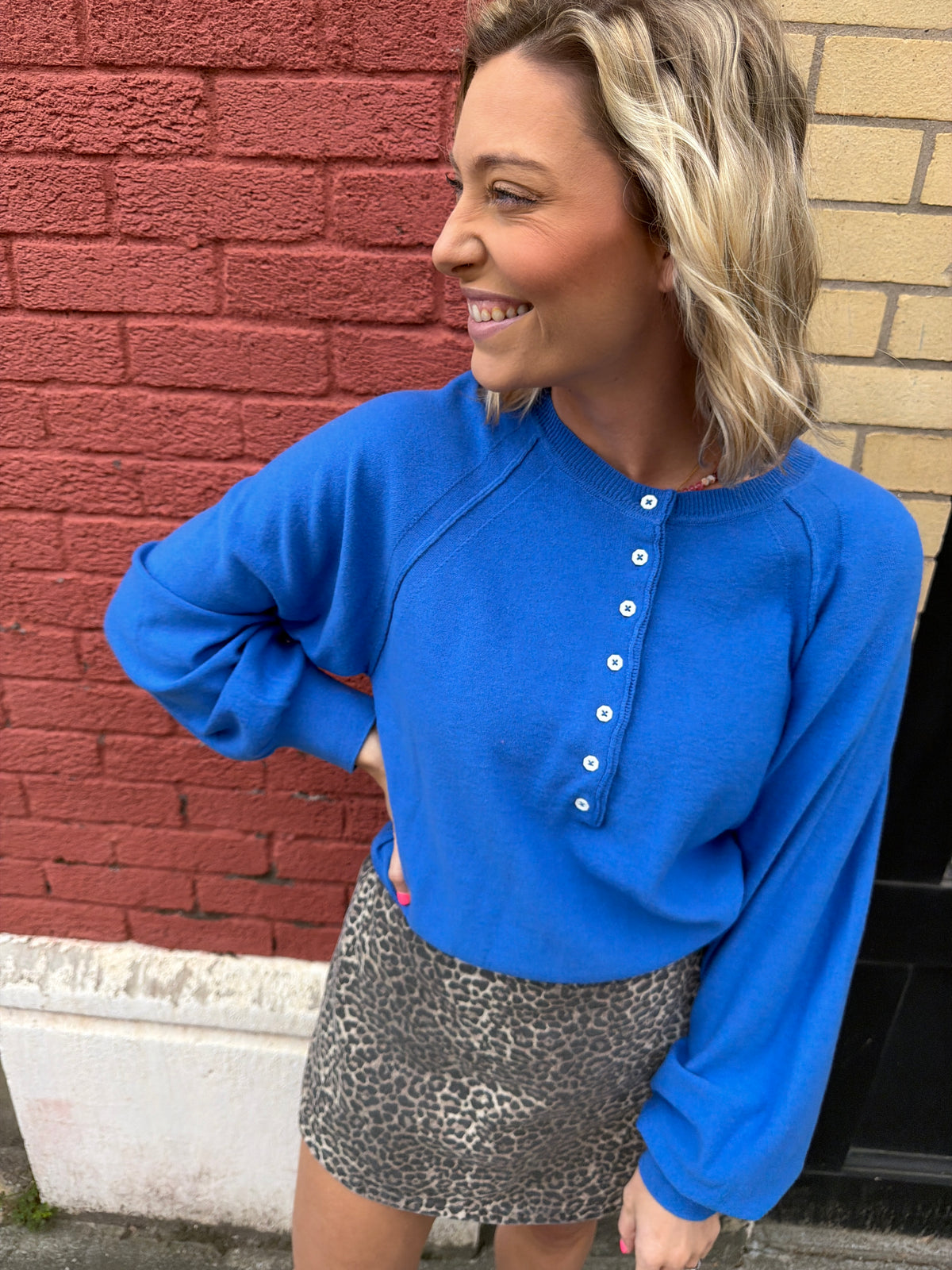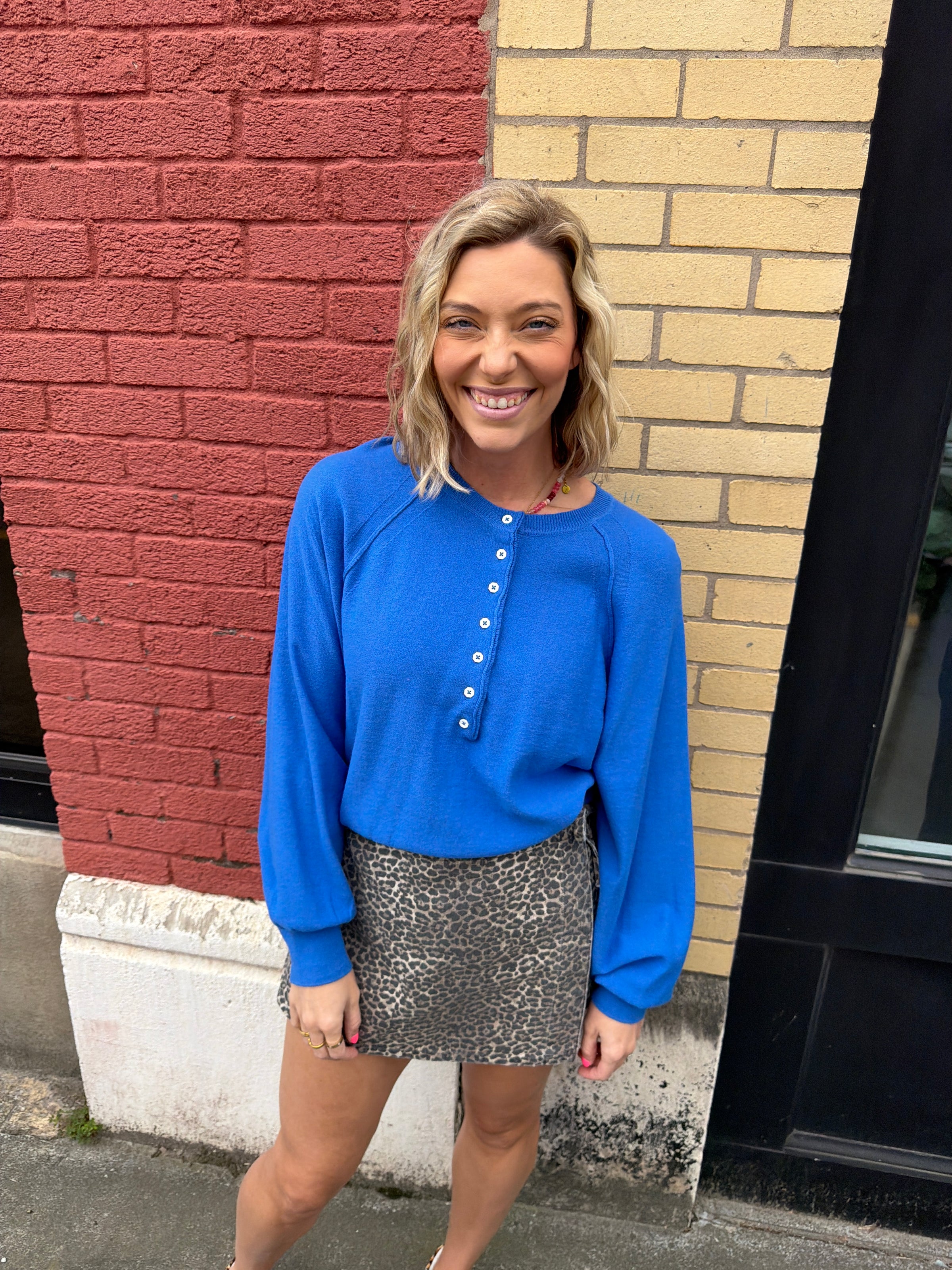 Okay THIS color. If you needed a pop-of-color moment for your closet… this is it. This cozy-chic pullover takes everything you loved about the neutral version and gives it a bold, happy upgrade. The soft knit feel + relaxed fit keeps it comfy, while the button-front detail adds just enough interest to make it feel styled without trying too hard. It’s the kind of top that instantly makes your outfit look more fun (even if you’re just pairing it with your go-to basics).