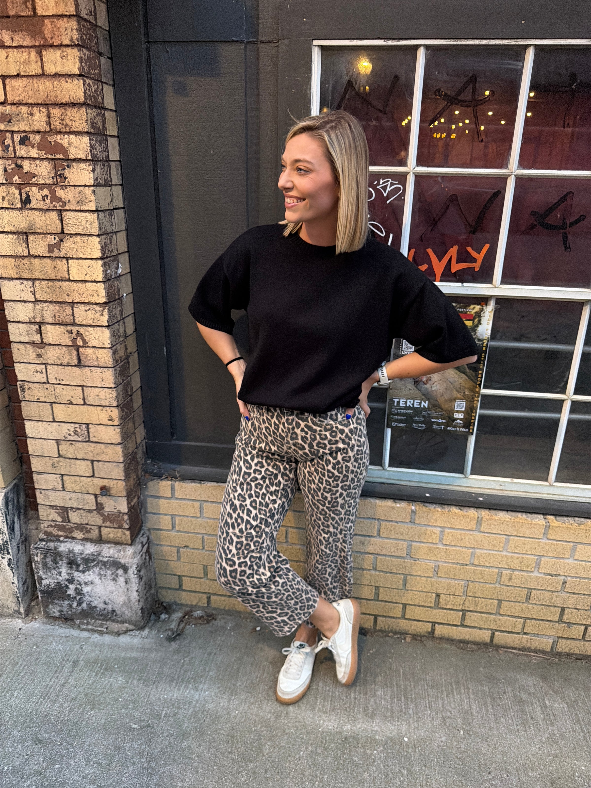 These leopard barrel leg jeans bring a bold edge to an otherwise effortless silhouette. Designed with a relaxed fit through the leg and a subtle taper at the ankle, they offer a modern shape that’s easy to style and comfortable to wear. The neutral leopard print makes them surprisingly versatile—pair with a simple tee, knit sweater, or structured top for everyday outfits that stand out just enough.