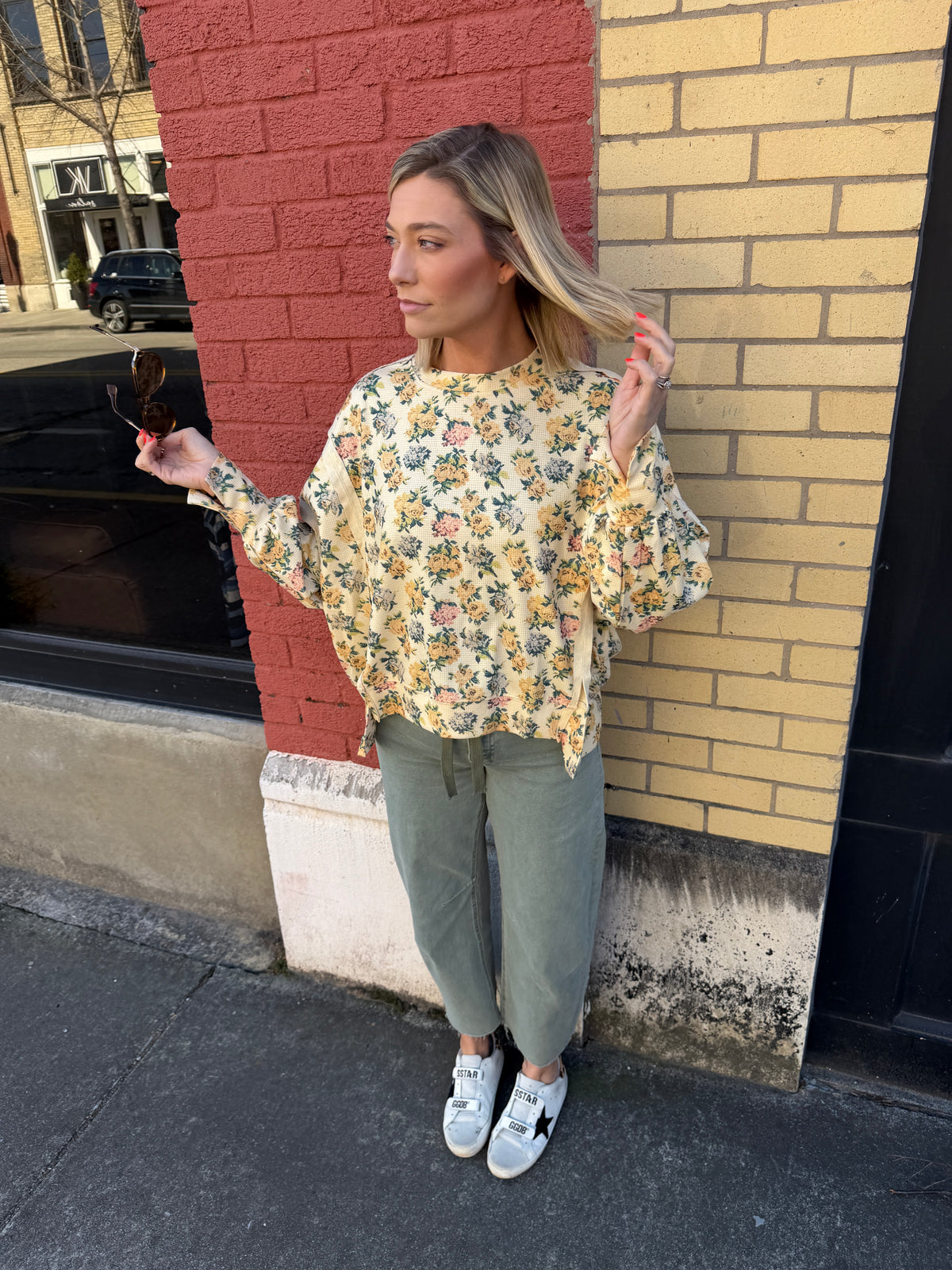 Soft, cozy, and effortlessly cute — this floral waffle knit top is the kind of easy piece you’ll reach for on repeat. Featuring a relaxed fit, lightweight waffle texture, and an allover floral print, it strikes the perfect balance between comfy and put-together. It’s ideal for everyday wear, casual outings, or those throw-it-on-and-go kind of days when you still want to look cute.